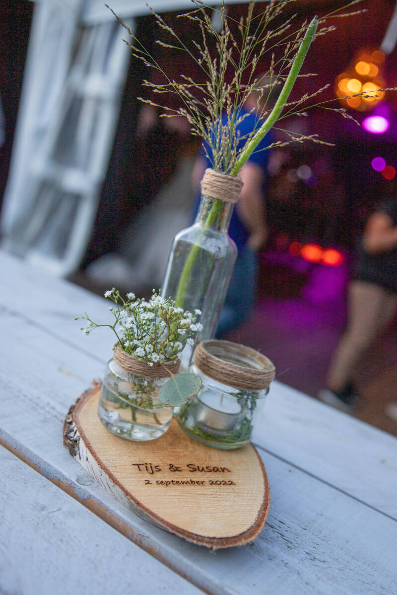Dit waren de bloemen op tafel. Gepersonaliseerd met onze namen en de datum.